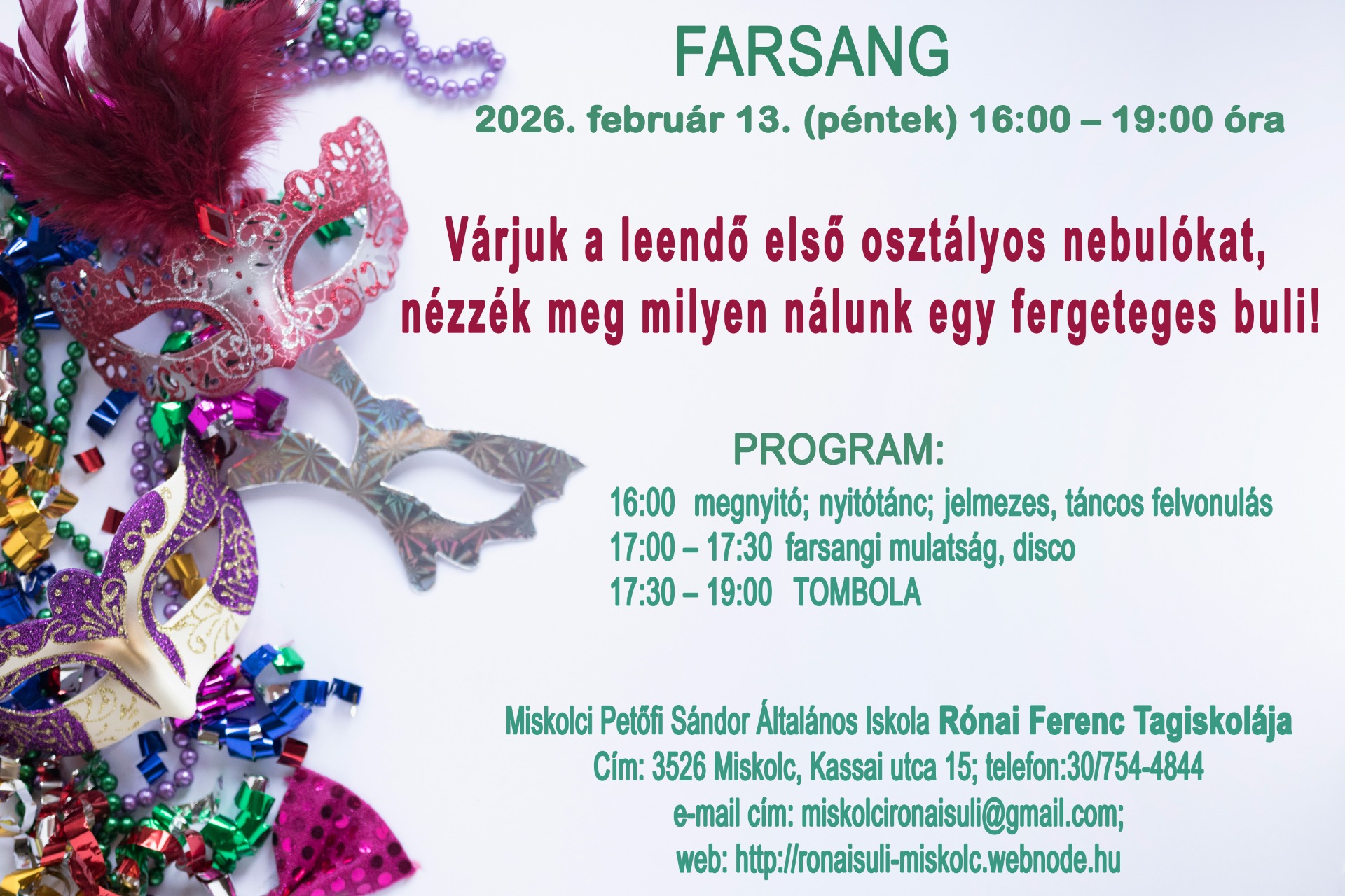 Meghívó a leendő elsősöknek a farsangra